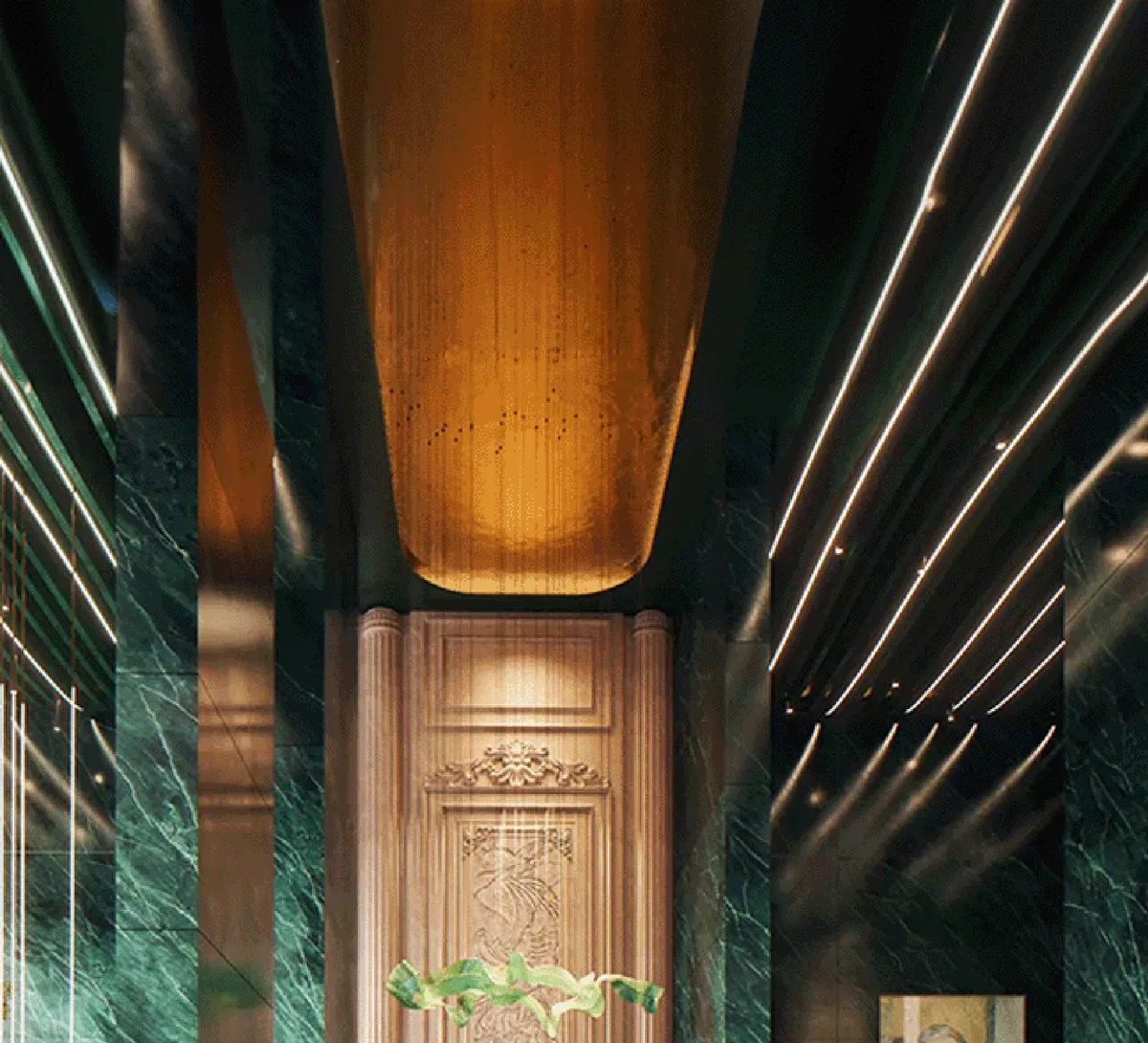 The core planning philosophy here is radical exclusivity within vertical scale. With only 4 apartments per floor, each one a corner unit, the privacy and spatial generosity approach what you would expect from a premium villa - except you get it at the 40th floor with city views in every direction. The 22.3-foot double-height living rooms in every unit are not a gimmick; they structurally change how the home feels, how light enters, and how sound moves through the space.